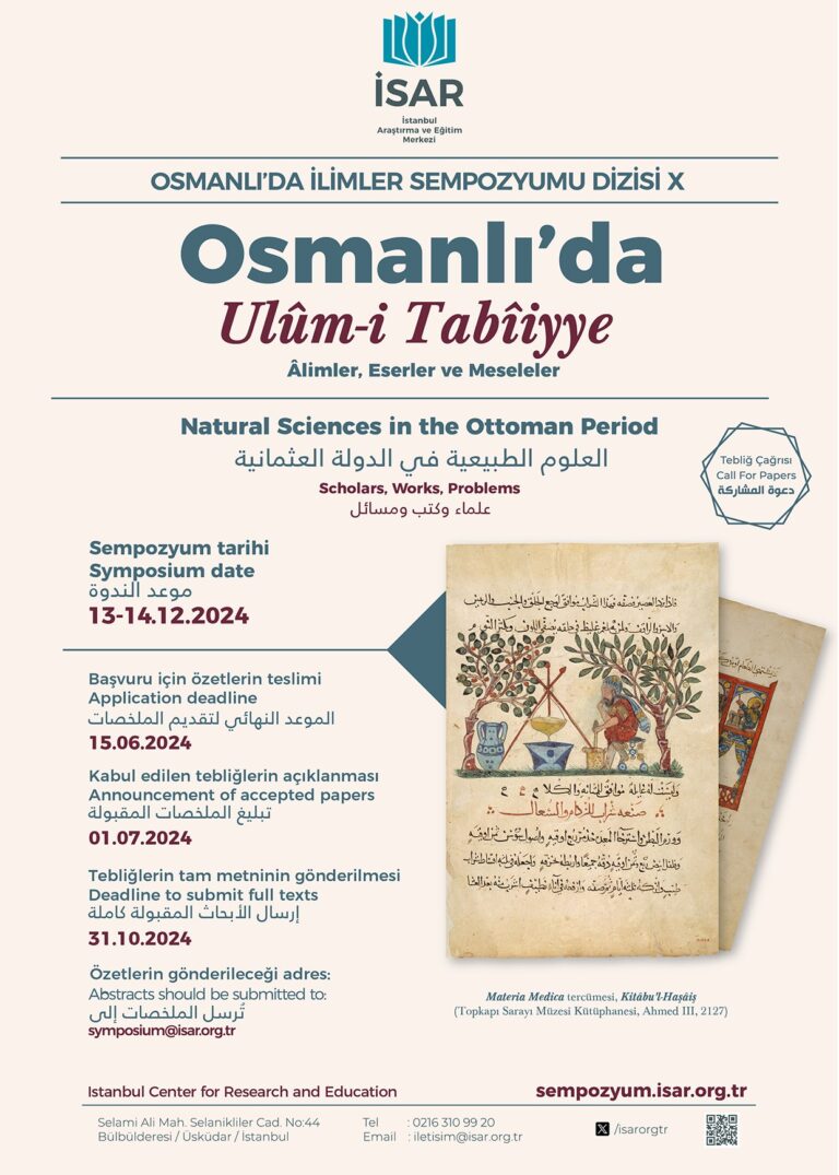 فراخوان کنفرانس در زمینه علوم طبیعی در دوره عثمانی، بنیاد آموزش و تحقیق استانبول، ترکیه